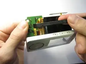 Наконец, поднимите чёрный переключатель, чтобы отсоединить ЖК-экран от платы ЖК с помощью лопатки.
