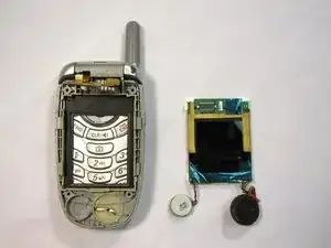 ЖК-экран, динамик и вибратор отделяются от телефона единым блоком.