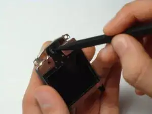 Когда ЖК-экран отслоится от большей части резинового корпуса, подденьте выделенную часть.