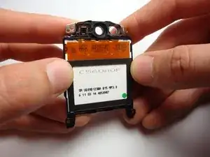 Сняв блок ЖК-экрана, осторожно выдавите динамик непроводящим острым предметом.
