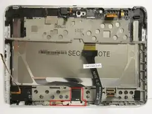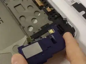 Обратите внимание, что вы можете снять только шлейф, прилегающий к разъёму для наушников, и металлическую накладку слева. Не пытайтесь снимать весь элемент целиком в этот момент.