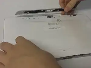 Поднимите серебристую накладку, чтобы открыть оставшуюся часть задней крышки.