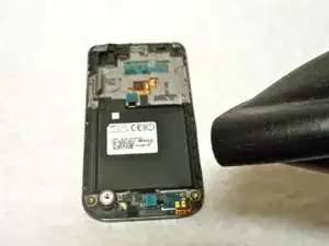 Используйте термофен или фен, чтобы ослабить клей, которым прикреплена сенсорная панель к сборке экрана.