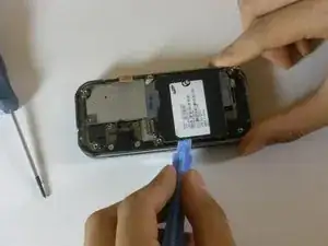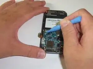 Чип клавиатуры расположен на верхней части устройства. С помощью пластикового инструмента для открывания подденьте клавиатуру и снимите её с корпуса.