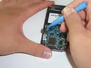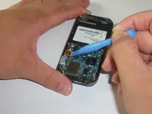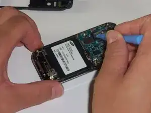 С помощью пластикового инструмента для открывания отключите разъём, ведущий от телефона к антенне.
