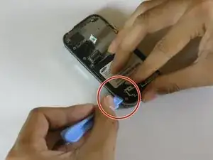 С помощью пластикового инструмента для открывания отключите разъём ЖК-экрана.