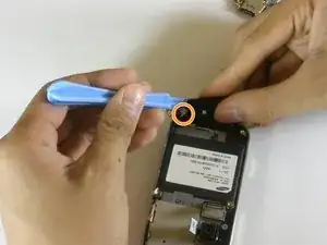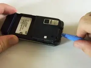 Извлеките аккумулятор из телефона: с помощью пластикового инструмента для открывания найдите зазор на любом краю аккумулятора и подденьте аккумулятор вверх.