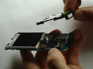 Осторожно оттяните белую клавиатуру и разъём зарядки от материнской платы и снимите их с телефона.