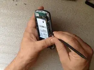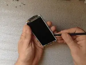 Используйте тонкую сторону пластикового инструмента, чтобы отделить ЖК-экран от базовой рамки.