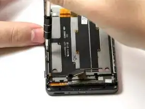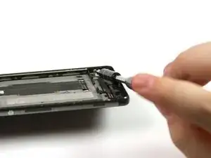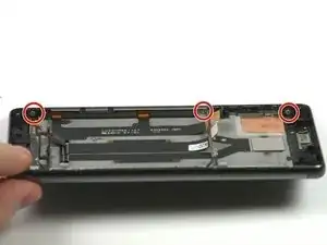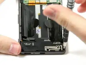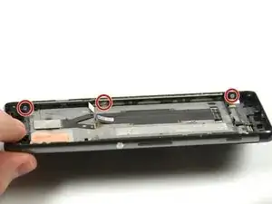 Выверните три винта 3 мм отвёрткой T5 вдоль стороны устройства, где расположены кнопки громкости.