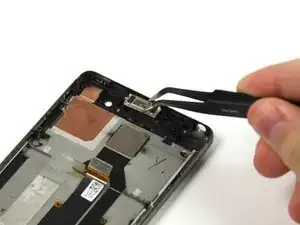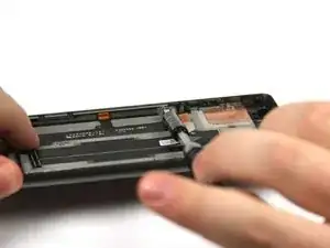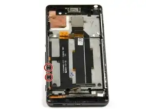 Выверните два винта 4 мм крестовой отвёрткой Phillips #000 с левой стороны задней части экрана.