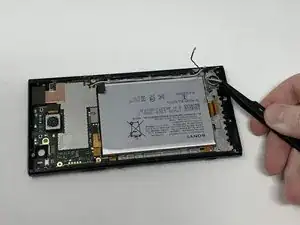 Возьмите и перекрутите чёрную батарейную бирку с помощью пинцета прецизионного типа.