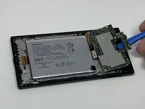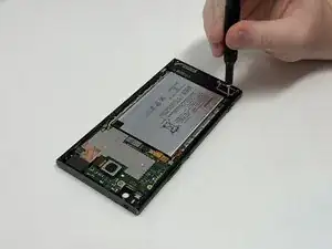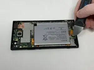 После снятия задней крышки используйте монтажный инструмент iFixit, чтобы отсоединить гибкий кабель.