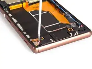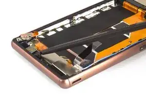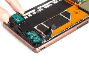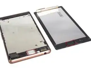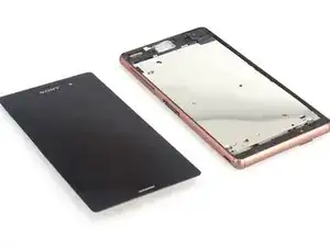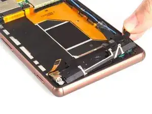 Необычная конструкция: слуховой динамик приклеен к переднему стеклу Sony Xperia Z3, а не к несущей рамке. Это означает, что можно снять ЖК-экран вместе со слуховым динамиком или отделить динамик от его крепления.