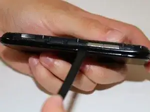 Обратите внимание на шов в блестящем черном пластике. Вставьте плоский конец лопатки в это место примерно на 3 мм выше кнопок регулировки громкости и проведите лопаткой по периметру телефона, пока передняя и задняя части не разойдутся.