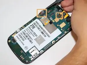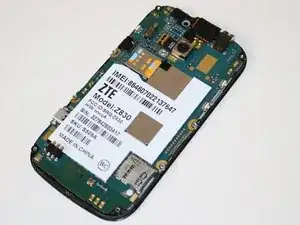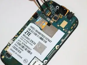 С помощью пинцета отсоедините последний шлейфовый разъем под материнской платой в верхней части телефона. Теперь материнская плата отделена от ЖК-экрана.