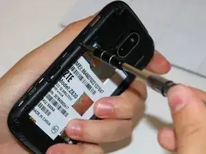 В области верхнего правого края аккумулятора подденьте аккумулятор ногтем и извлеките его из телефона.