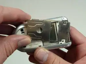 Осторожно сдвиньте наружу металлическую серебристую накладку.