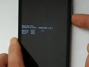 В меню Режим загрузки выберите [Режим восстановления] (используйте кнопку увеличения громкости для навигации и кнопку уменьшения громкости для подтверждения).