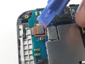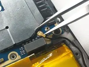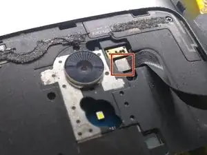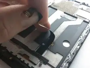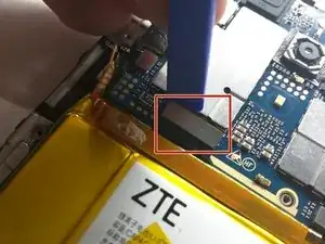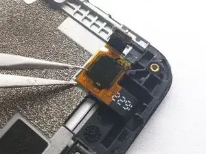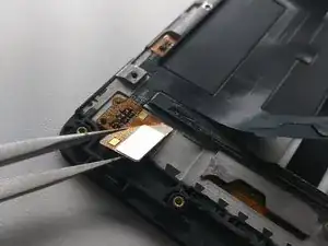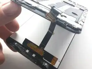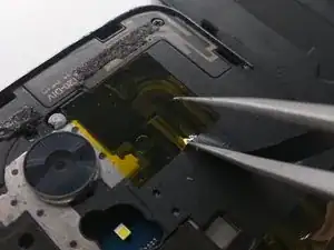 Отклейте этот гибкий кабель и снимите его пинцетом там, где он приклеен к рамке
