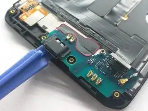 Подденьте плату зарядного порта/антенны-дочернюю плату.