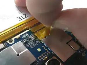 Снимите каптон-ленту над разъемом батареи