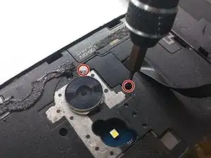 Отвинтите два винта, удерживающие крышку гибкого кабеля сканера отпечатков