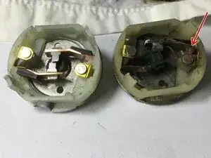 Я пытался починить предыдущий ремонт, заменив корродированную стальную перемычку новым медным листом для обеспечения электрического контакта между клеммным штырем и приклеенным держателем щётки, но хотя это работало, надёжности не было.