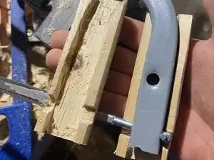Моя первоначальная идея заключалась в использовании двух половин более прочного дерева, вырезанных пилой и стамеской, для закрепления стальной рамы.