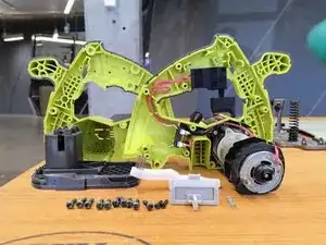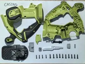 Механизм состоит из серой детали из АБС-пластика (20 мм длина, 11 мм ширина, 15 мм высота, масса 2,2 г), флуоресцентно-зелёной крышки из АБС-пластика (44 мм длина, 10 мм ширина, 2,75 мм высота, масса 4 г) и чёрной стальной пластины из углеродистой стали (42 мм длина, 13 мм ширина, 2 мм толщина, масса 6 г).