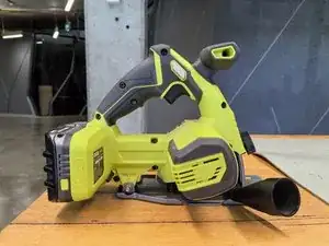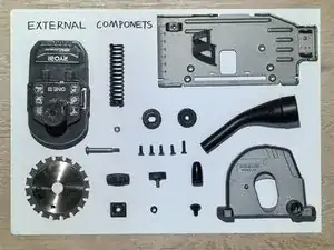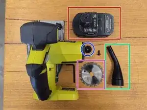 На этом этапе я снимаю внешние компоненты устройства. Сначала, для безопасности, извлекаю аккумулятор. Затем легко отсоединяю воздуховод. Далее, используя шестигранный ключ, идущий в комплекте, снимаю пильный диск.