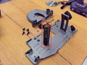 Эта пружина холодной навивки изготовлена из высокоуглеродистой стали и обладает отличной упругостью. Используется для поддержки основной конструкции устройства. При работе пользователь должен нажать кнопку фиксатора, сжимая пружину. После отпускания кнопки пружина возвращается в исходное положение, убирая диск в защитный кожух для обеспечения безопасности.