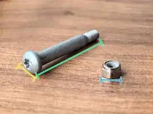 Этот болт с шестигранной головкой из алюминия используется как для соединения деталей устройства, так и для прижима вала при работе. Длина — 45 мм, диаметр — 9 мм. Масса: 9,5 г.