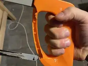 Плохо сконструированная пластиковая ручка сломана. В остальном рама пилы в порядке и может служить очень долго.