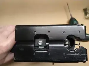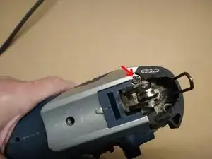 Снимите один торкс T20 винт и шайбу с рычага лезвия, затем удалите рычаг лезвия и пружину.