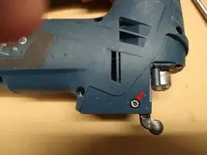 Удалите восемь винтов торкс T20 с корпуса пилы. (Девятый винт находился под серебряной металлической крышкой).
