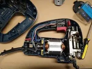 Теперь вы можете разделить две половины пилы, что позволит вам получить доступ ко всем компонентам.