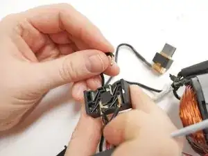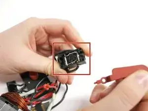 Теперь извлечём сетевой кабель. Его выводы подключены к корпусу курка.