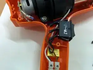 Нагревательная спираль используется в качестве резистора для понижения напряжения для мотора, поэтому она имеет двойное предназначение