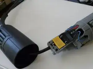 Открутите оба клеммника. Возможно, потребуется пинцет или длинногубцы, чтобы добраться до винта под чёрным штоком. Провода имеют обжимные наконечники, соответствующие винтам. Снимать зажим кабеля, как правило, не требуется.