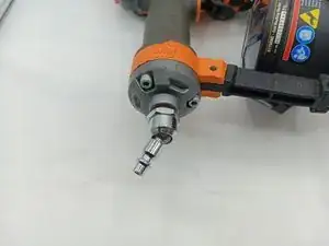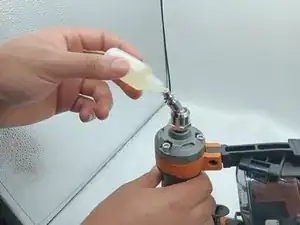 Добавьте 5-10 капель (или больше, если необходимо) масла для пневматических инструментов в поворотный соединитель.
