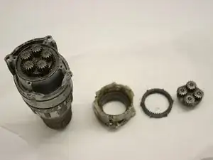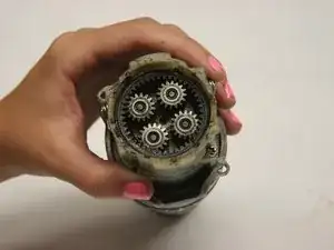 Используя отвертку Philips #2, открутите четыре винта, крепящие пластиковый картер редуктора.