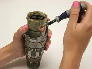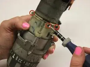 Используя отвертку Phillips #2, открутите пять винтов, крепящих рукоятку дрели к корпусу.