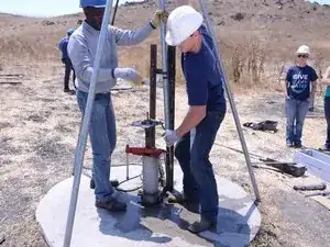 Если вы устанавливаете трубу и подъемный элемент выше уровня, держите Т-образную рукоятку на месте до тех пор, пока не будете готовы установить следующий компонент.