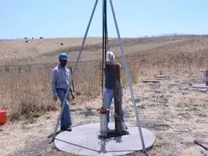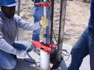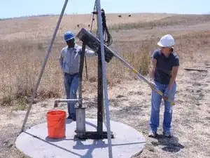 Осторожно — не уроните подъемный элемент водопроводной трубы, иначе можно повредить насос и цилиндр.