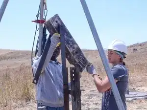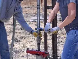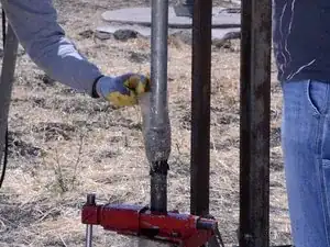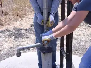 Когда двое людей поддерживают Т-образную рукоятку, снимите шток насоса.