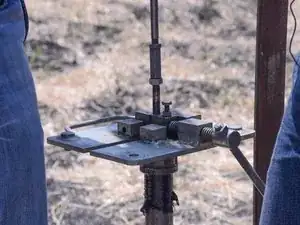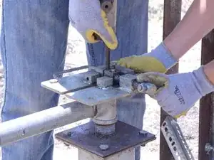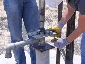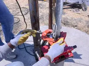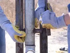 Разместите насос и шток и затяните их вокруг штока, закрепив насос и шток вместе.