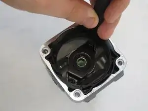 Гаечным ключом 3/8 снимите гайку, расположенную в центре корпуса редуктора.