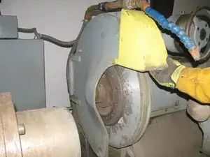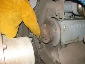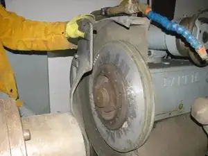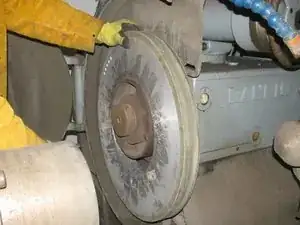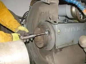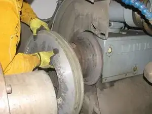 Удалите двенадцать болтов, фиксирующих абразивный круг, с помощью рычага с битой 5/16.