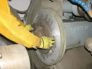 Берегите пальцы! Абразивный круг довольно тяжелый и может вызвать травму, если с ним обращаться неосторожно или уронить.